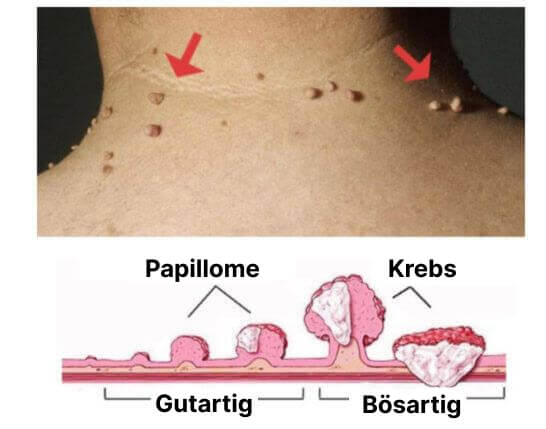 - Mögliche Komplikationen (das humane Papillomavirus (HPV), das Warzen und Papillome verursacht, kann mit ernsteren Erkrankungen wie Krebs in Verbindung gebracht werden);
